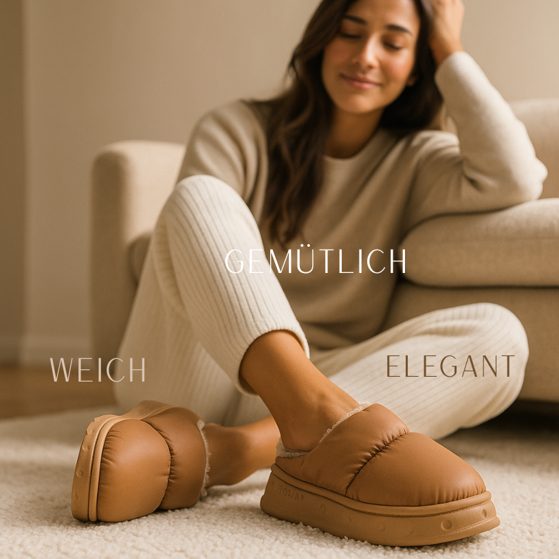 Reinschlüpfen und wohlfühlen – unsere „Puffer“-Hausschuhe umhüllen deine Füße mit wohliger Wärme und unvergleichlicher Weichheit. Perfekt für entspannte Stunden zuhause.